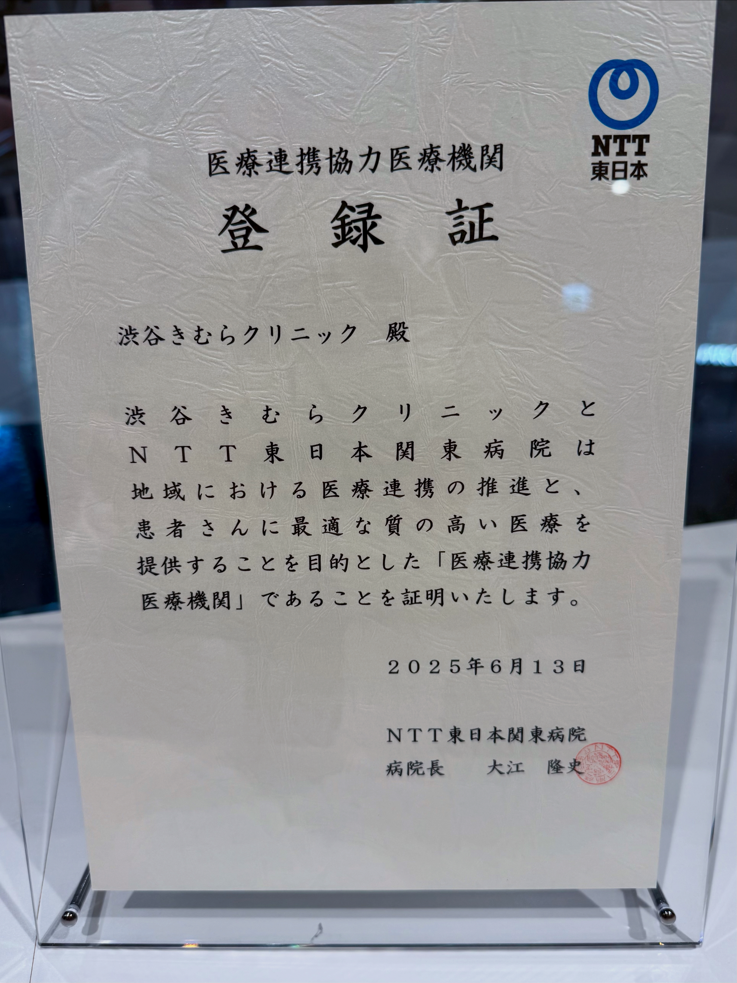 このたび、私たちのクリニックはNTT東日本関東病院様との医療連携を開始しました。このパートナーシップにより、患者様により一層質の高い医療サービスを提供できる体制が整いました。当院では、常に患者様の健康を第一に考え、最新の医療技術と専門知識を活かした診療を心がけています。今後は、NTT東日本関東病院様との共同での講演会や勉強会などを通じて、地域医療の向上に努めてまいります。患者様が安心して通院できる環境を提供し、皆様の健康を支えるパートナーとしてこれからも努力してまいりますので、どうぞよろしくお願い申し上げます。当院の医療連携にご期待ください。