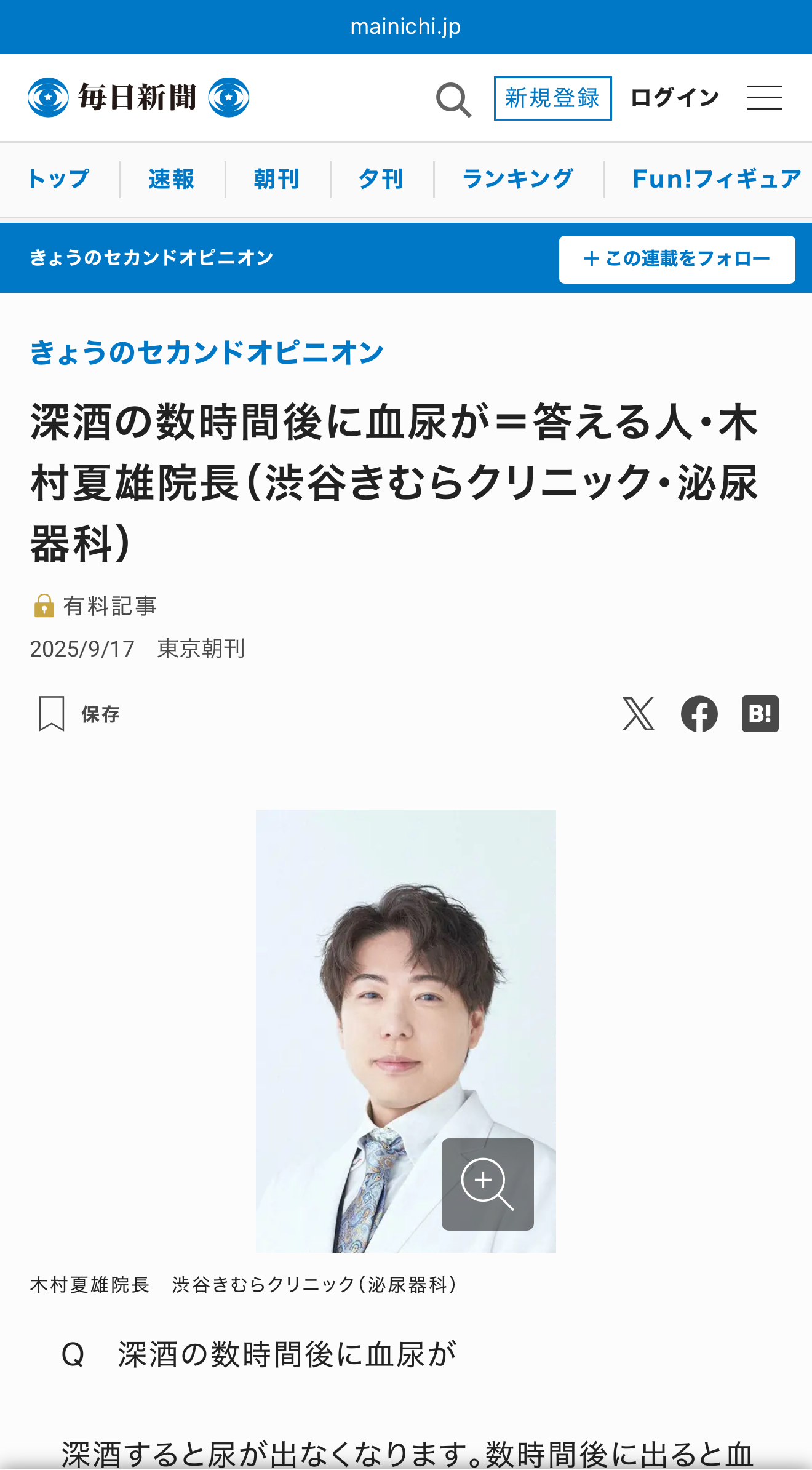 当院医師木村の記事が本日2025年9月17日毎日新聞「今日のセカンドオピニオン」に掲載されました。